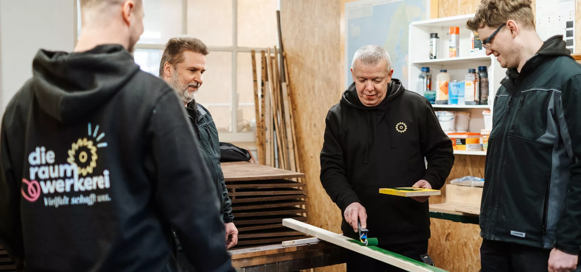 Diese Vielfalt im Team der Raumwerkerei schafft was: Unsere Leistungen sind vollwertig und voller Werte. Wir wirken und werken, um den Raum um uns und zwischen uns lebenswerter, barrierefreier, inklusiver zu machen. Das ist ganz im Sinne unserer Auftraggeber:innen. Zusammen mit ihnen erarbeiten wir kreative, inklusive Lösungen, sei es für die Möbel einer Kita oder für den Garten einer Wohnanlage. Denn unsere Vielfalt sorgt auch für neue Blickwinkel und frische Perspektiven.